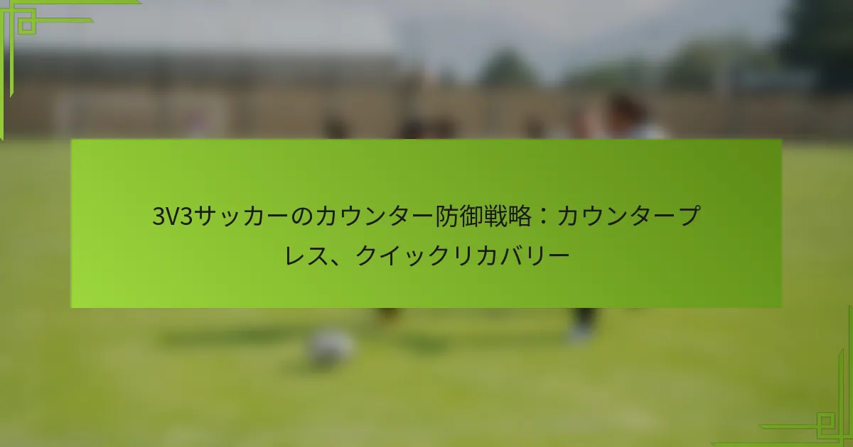 3対3サッカーにおいて、カウンタープレスや迅速なリカバリーといった効果的なカウンター防御戦略は、試合のコントロールを維持するために不可欠です。カウンタープレスは、ボールを失った直後にすぐにボールを奪い返そうとすることを含み、迅速なリカバリーは、相手の得点機会を最小限に抑えるために防御の形を素早く再構築することに焦点を当てています。これらの戦術は、相手チームの戦略を妨害するだけでなく、チーム全体のパフォーマンスと士気を向上させます。
