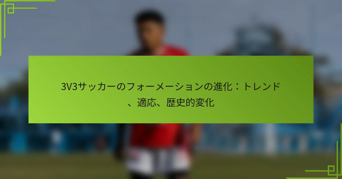 3v3サッカーのフォーメーションは、選手のスキルレベル、年齢層、競技的またはレクリエーション的なプレーの性質に応じて調整されます。これらの適応を理解することで、チームは戦略とフィールドでのパフォーマンスを最適化できます。