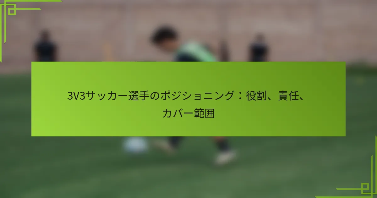 3対3サッカーでは、効果的な選手のポジショニングがチームのパフォーマンスを最大化するために重要です。各選手は、アタッカー、中盤、ディフェンダー、ゴールキーパーといった特定の役割を担います。これらの役割には、攻撃と防御のプレーを強化するために戦略的な意識とコミュニケーションが必要な独自の責任があります。これらのポジションを理解し実行することは、試合の結果に大きな影響を与える可能性があり、一般的なポジショニングのミスはフィールド上での機会の喪失や脆弱性につながることがあります。