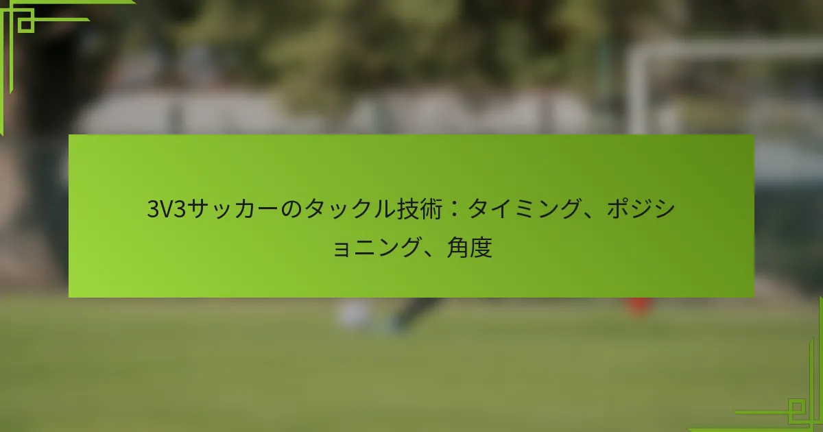 3対3サッカーにおける主要なタックル技術には、タイミング、ポジショニング、角度の効果的な活用が含まれます。これらの要素をマスターすることで、選手はボールを奪い返す能力や相手のプレーを妨げる能力を大幅に向上させることができます。